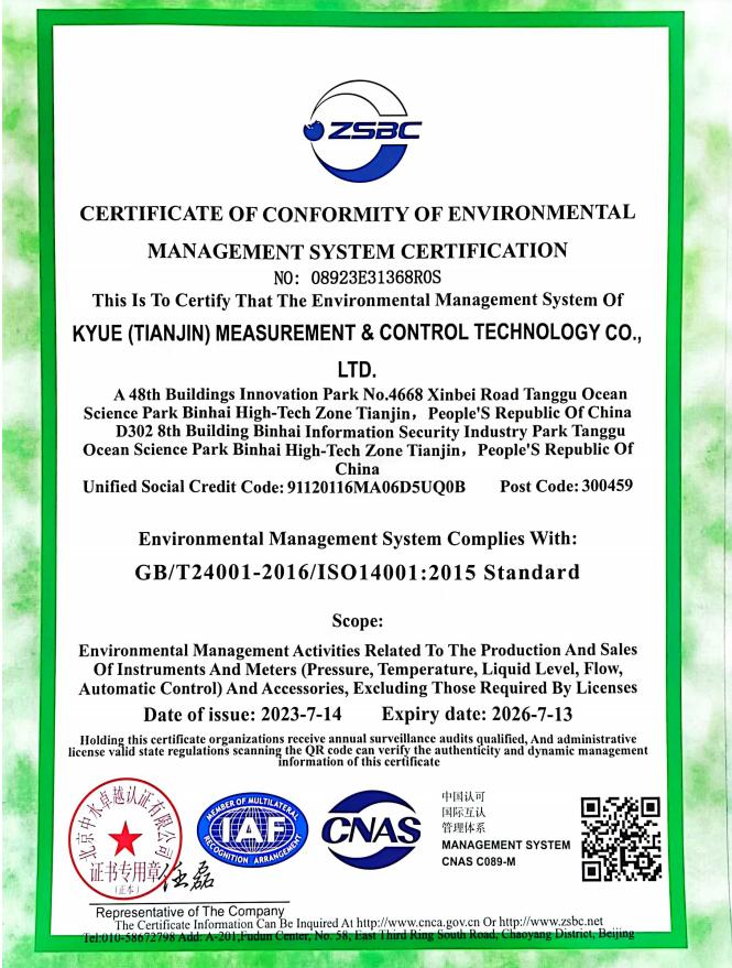 Kyue (Tianjin) es una empresa de alta tecnología que se centra en el sector de la medición y control industrial, integrando investigación y desarrollo, fabricación y servicio de ventas. Nuestros productos principales incluyen: Instrumentos de presión: transmisor de presión, sensor de presión, manómetro digital, transmisor de presión diferencial, etc. Instrumentos de temperatura: Termopar (TC), RTD, transmisor de temperatura integral. Instrumentos de nivel: transmisor de nivel sumergible, transmisor de nivel ultrasónico, flotador, magnético, transmisor de nivel magnetostrictivo, transmisor de nivel de radar, etc. Flujómetros: Flujómetro de orificio, flujómetro magnético, flujómetro de vórtice, flujómetro de turbina, flujómetro de Coriolis, etc. Instrumentos de análisis de agua para probar: pH/ORP, conductividad, oxígeno disuelto, turbidez, cloro residual, etc. Accesorios (revestimientos): colector, elemento de enfriamiento/amortiguador, sifones, diafragma, brida, etc.